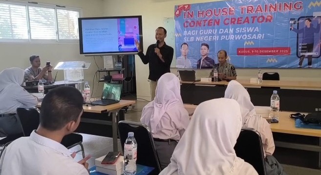 Kudus, Tropongnews.com– Sekolah Luar Biasa (SLB) Negeri Purwosari Kudus, Jawa Tengah, mengambil langkah progresif di era digital dengan menggelar In House Training Konten Kreator pada Selasa (9/12).